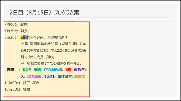 「参加・実践型ESD研修」として各方面に公開した。→これは極めて高い効果がある。